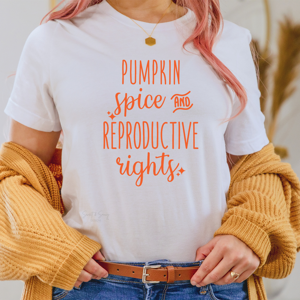 Nothing like pumpkin spice, crisp air and the fall of the patriarchy. We believe in pumpkin spice and reproductive rights here. Step out and speak up with this shirt and give ’em pumpkin to talk about.