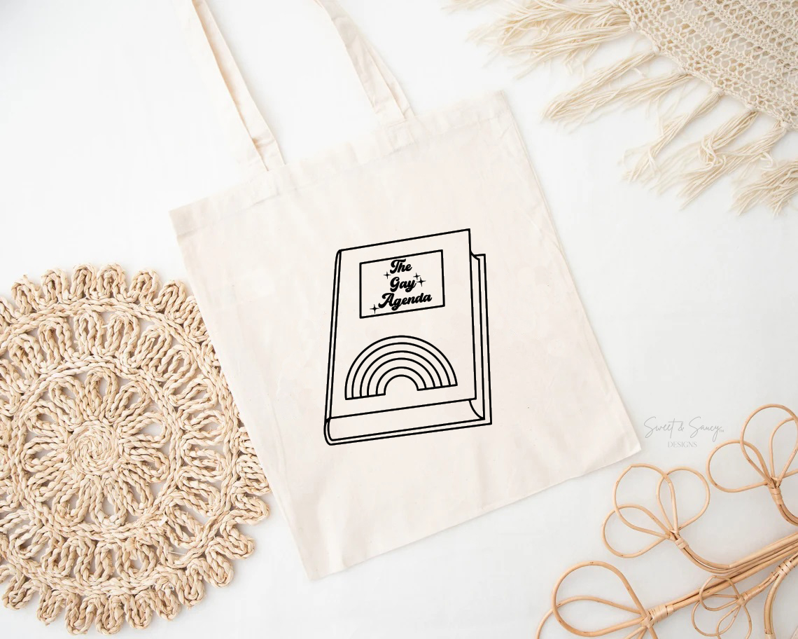 Our Gay Agenda canvas tote bag is the essential accessory to show off your Pride year round. Whether you’re attending a Pride parade or a street market, this sustainable option is perfect for toting your stuff around town, while showcasing your Pride. Handmade with love.